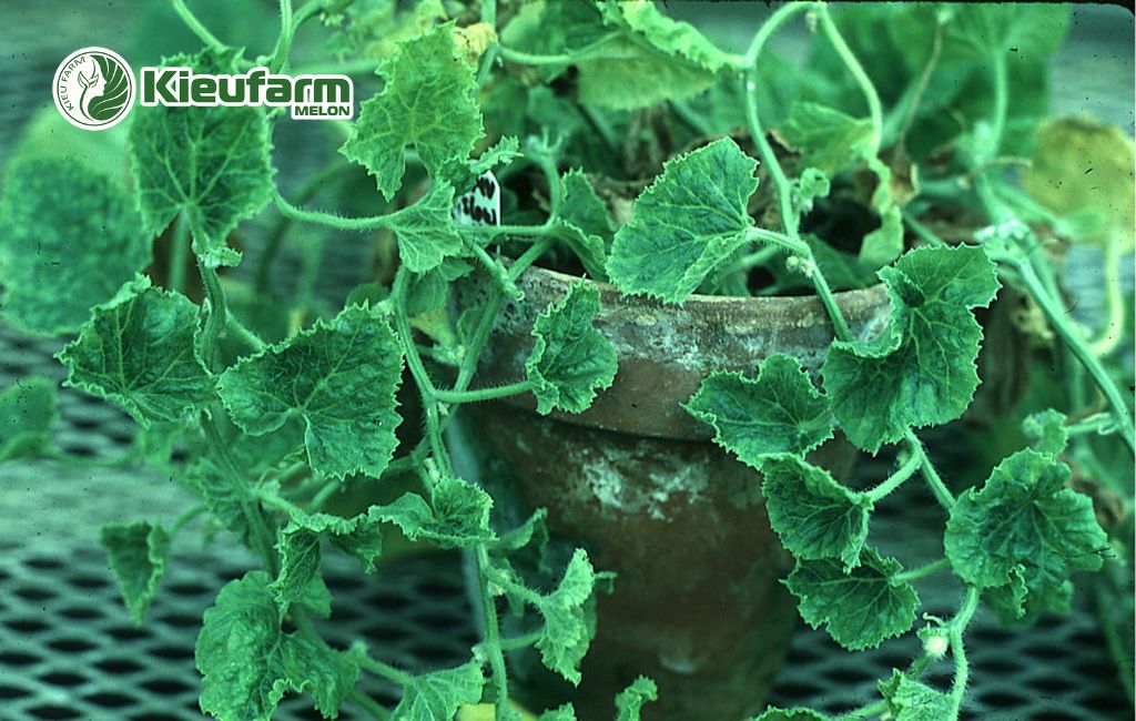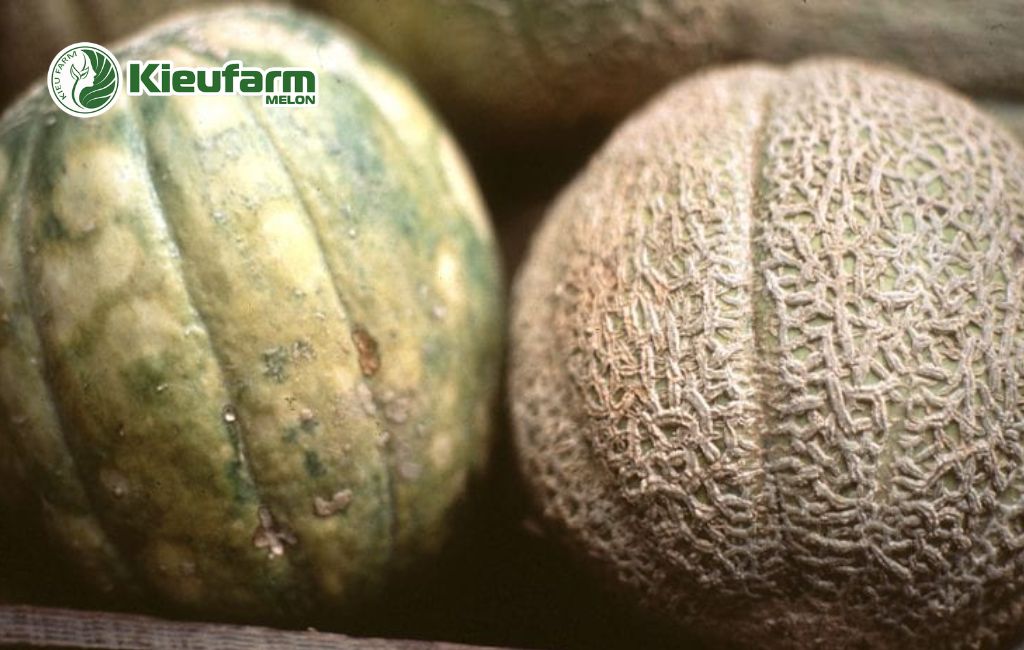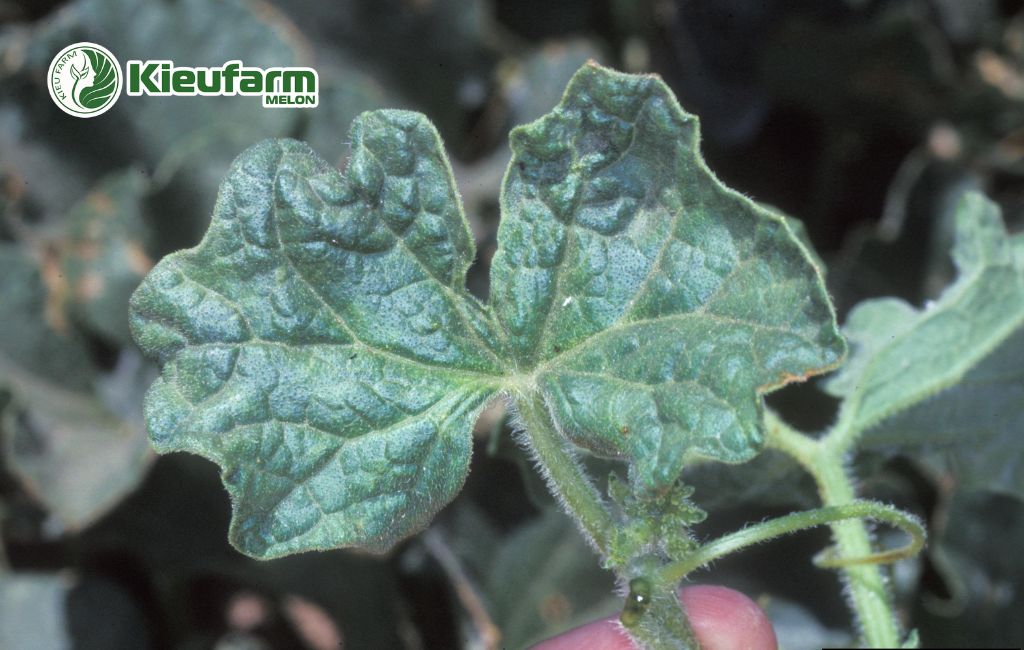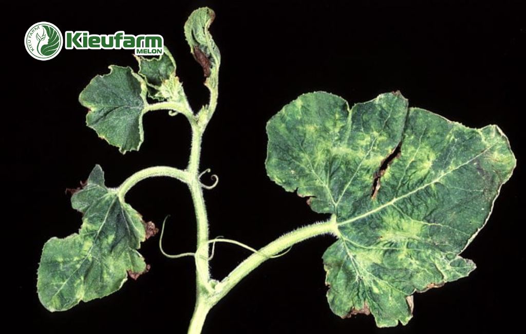 Bệnh khảm lá do virus gây ra, ảnh hưởng trực tiếp đến sự phát triển của cây dưa lưới.