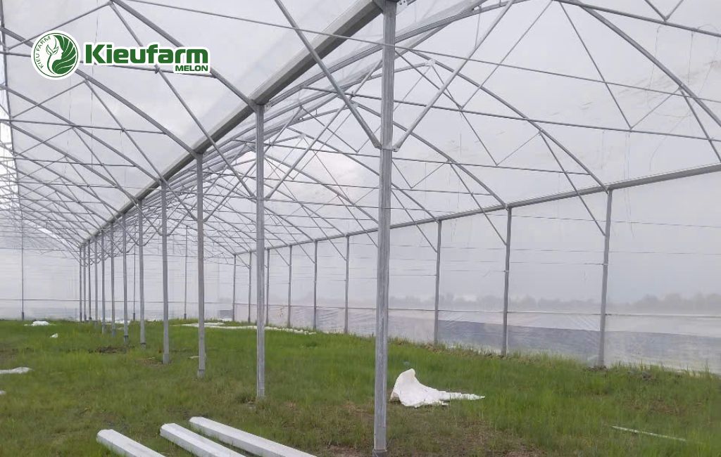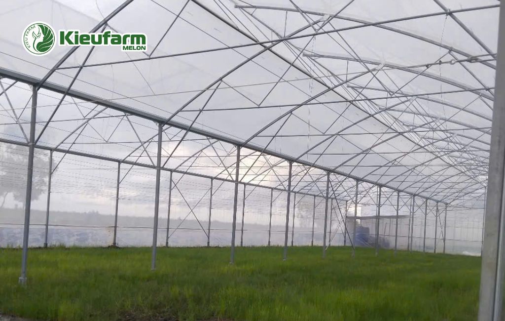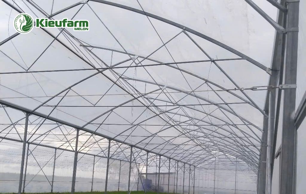 - Màng PE 7 lớp khuếch tán ánh sáng: giảm nhiệt độ, tạo điều kiện thuận lợi cho dưa lưới phát triển đồng đều.