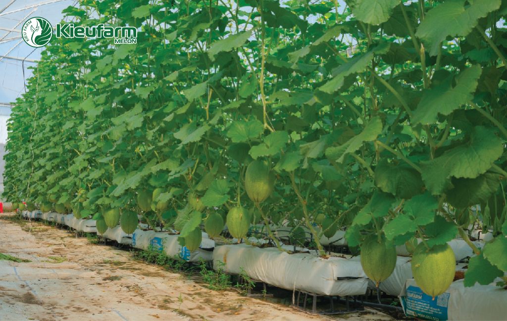 - Loại hình canh tác: Dưa lưới trên giá thể kết hợp hệ thống nhỏ giọt tự động.