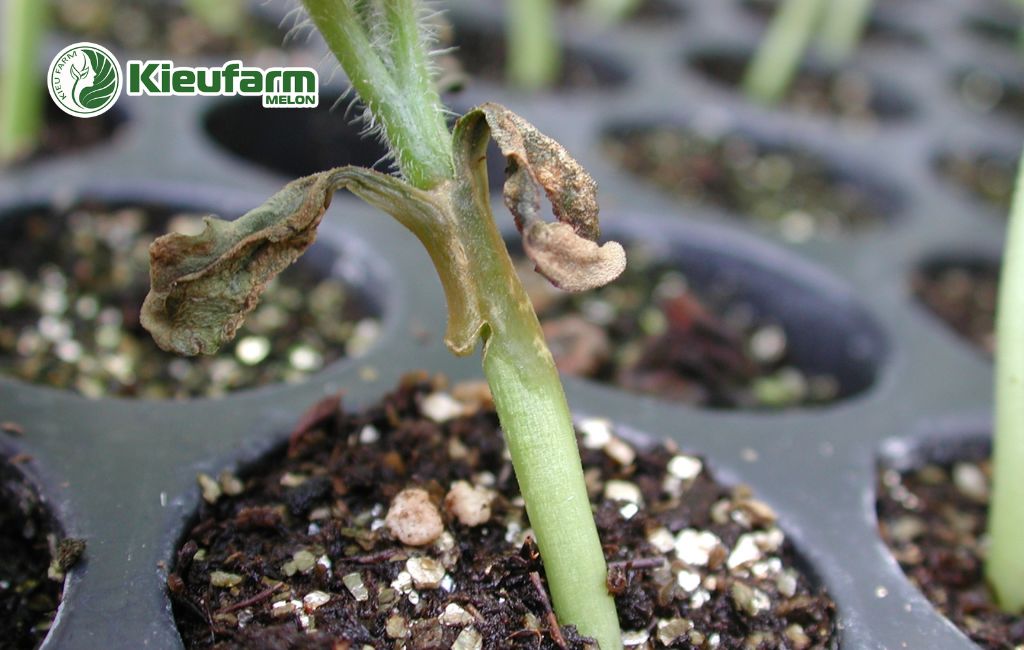 Bệnh chết cây non (damping-off) là hiện tượng cây dưa lưới bị thối gốc, héo rũ và chết ở giai đoạn từ khi nảy mầm đến khi có 2 - 3 lá thật. Bệnh thường xuất hiện trong điều kiện ẩm ướt, đất kém thoát nước và không khí thiếu thông thoáng. Nếu không kiểm soát kịp thời, bệnh có thể gây mất trắng vườn ươm hoặc giảm đáng kể tỷ lệ sống của cây con.