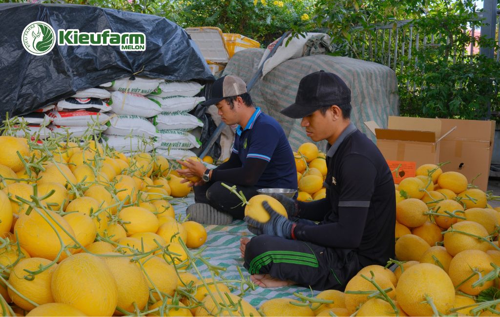 - Đồng hành lâu dài: Không chỉ thu mua vụ mùa, Kieufarm còn hợp tác bao tiêu dưa lưới quanh năm cho các mô hình đối tác và hộ liên kết.