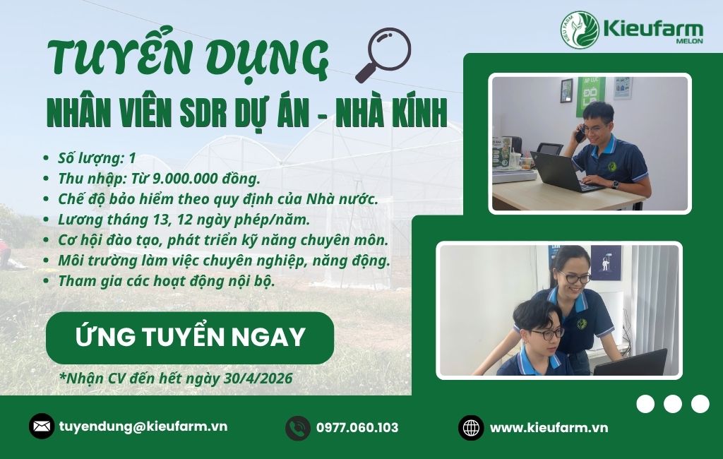 Ứng viên quan tâm vui lòng gửi CV về email tuyendung@kieufarm.vn với tiêu đề: Họ tên – Ứng tuyển nhân viên SDR.