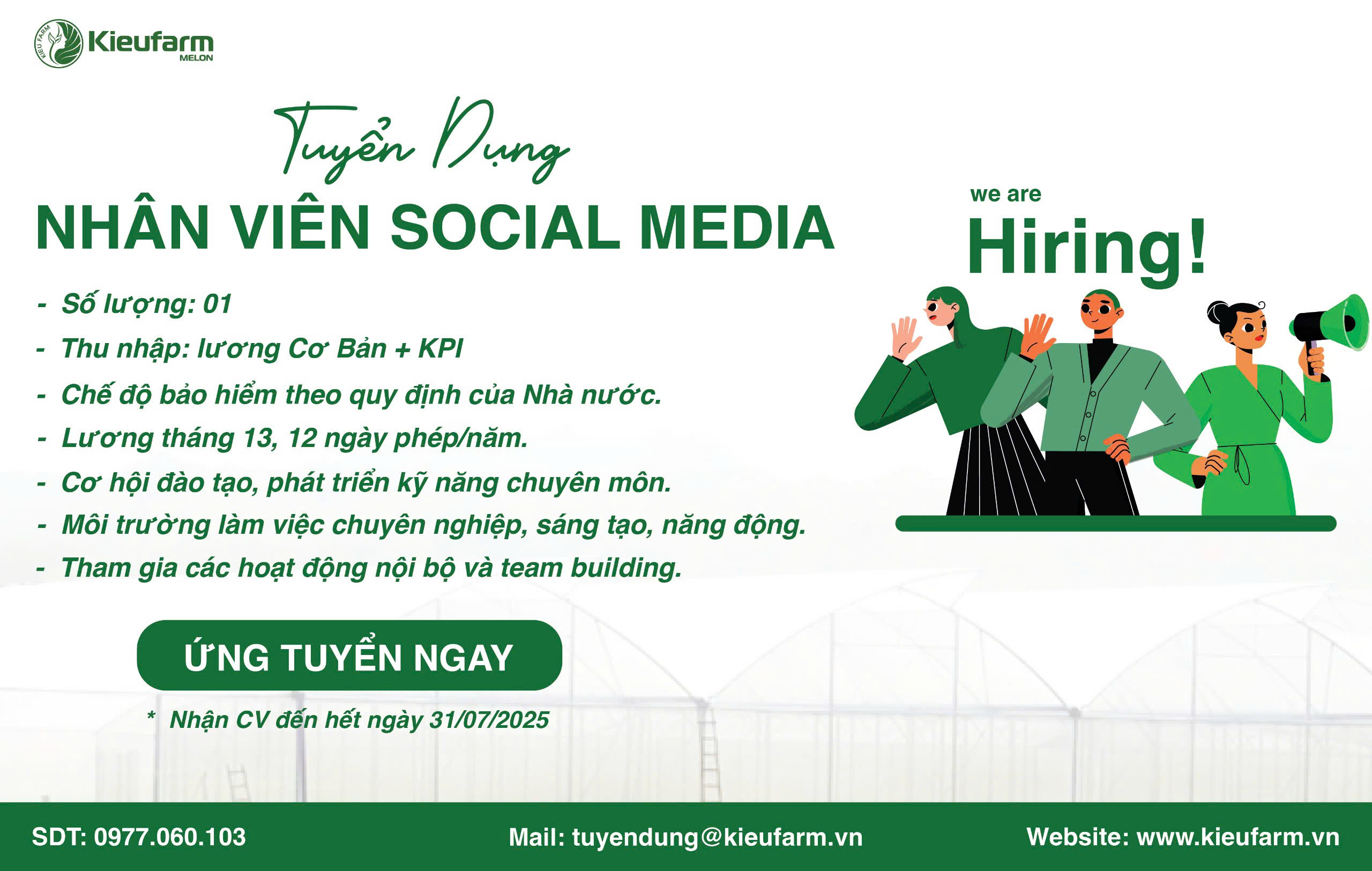 Ứng viên quan tâm vui lòng gửi CV về email tuyendung@kieufarm.vn với tiêu đề: Họ tên – Ứng tuyển nhân viên Social Media.