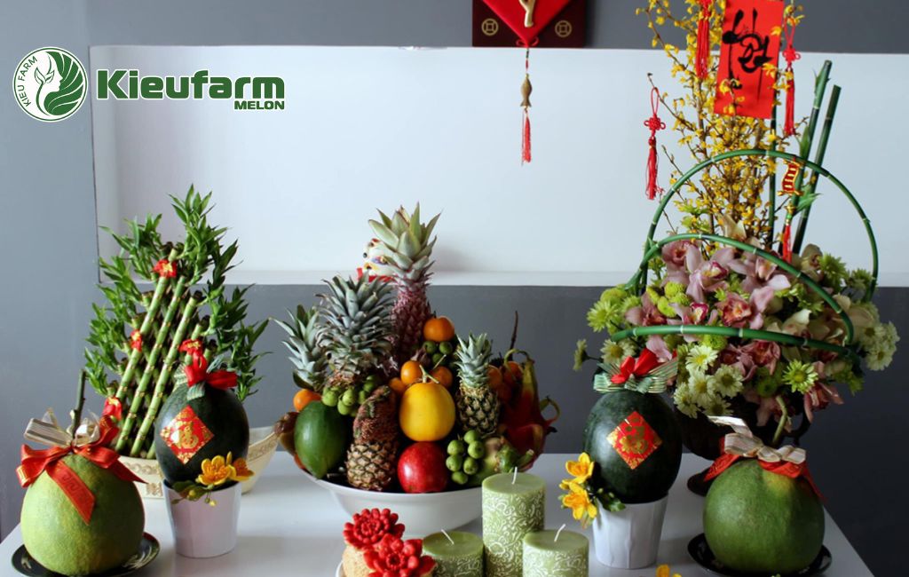 Mâm ngũ quả là một phần không thể thiếu trong văn hóa truyền thống Việt Nam, đặc biệt trong dịp Tết và các lễ cúng gia tiên. Mỗi loại quả trên mâm đều mang một ý nghĩa riêng, tượng trưng cho sự sung túc, bình an, may mắn và hạnh phúc trong gia đình. Trong số đó, dưa lưới được nhiều người ưa chuộng nhờ màu vàng cam rực rỡ, hương thơm nhẹ nhàng và hình dáng tròn trịa, tượng trưng cho sự viên mãn và tài lộc. Cùng Kieufarm điểm danh qua những cách bố trí mâm ngũ quả dưa lưới sao cho đẹp và ý nghĩa nhé!