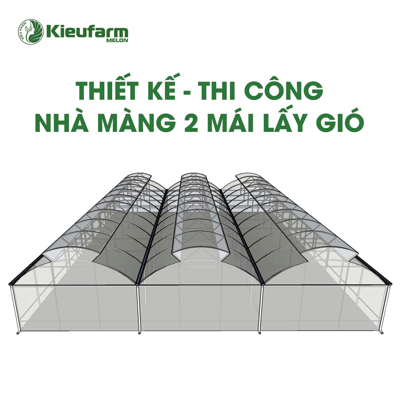 Thiết kế nhà màng trồng dưa lưới 2 mái lấy gió - Kieufarm