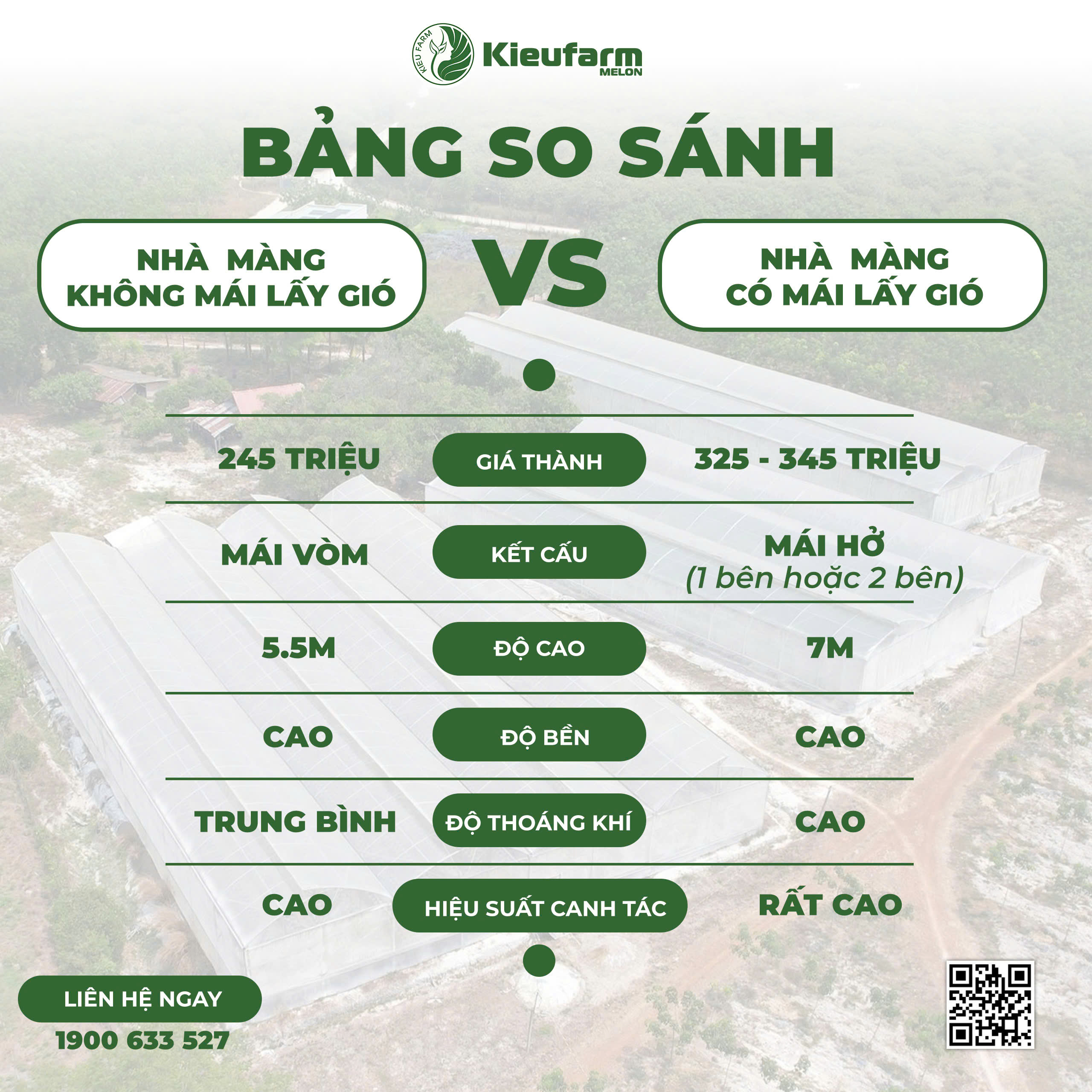 Nhà màng trồng dưa lưới không mái gió của Kieufarm chính là giải pháp “khởi nghiệp an toàn – hiệu quả tối ưu”, giúp bạn giảm áp lực tài chính, rút ngắn thời gian triển khai và nhanh thu hồi vốn. Đây là lựa chọn thông minh cho những ai muốn thử nghiệm mô hình trước khi đầu tư lớn hoặc khởi nghiệp với vốn hạn chế nhưng vẫn muốn áp dụng công nghệ cao. Liên hệ ngay Kieufarm để được tư vấn miễn phí và nhận báo giá chi tiết cho diện tích bạn mong muốn.