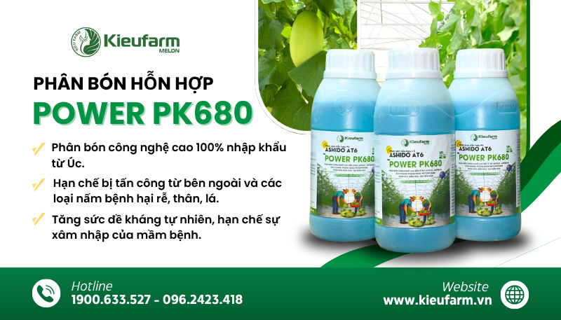 Trong quá trình canh tác dưa lưới và các loại cây ăn trái, bà con nông dân thường gặp phải tình trạng trái bị nứt, cây yếu, dễ nhiễm bệnh. Phân bón POWER PK680 là sản phẩm nhập khẩu 100% từ Úc, với chất lượng cao, đạt tiêu chuẩn quốc tế, được thiết kế đặc biệt giúp tăng cường sức đề kháng tự nhiên và hỗ trợ nuôi trái chắc khỏe, đặc biệt phù hợp cho mô hình trồng dưa lưới trong nhà màng.