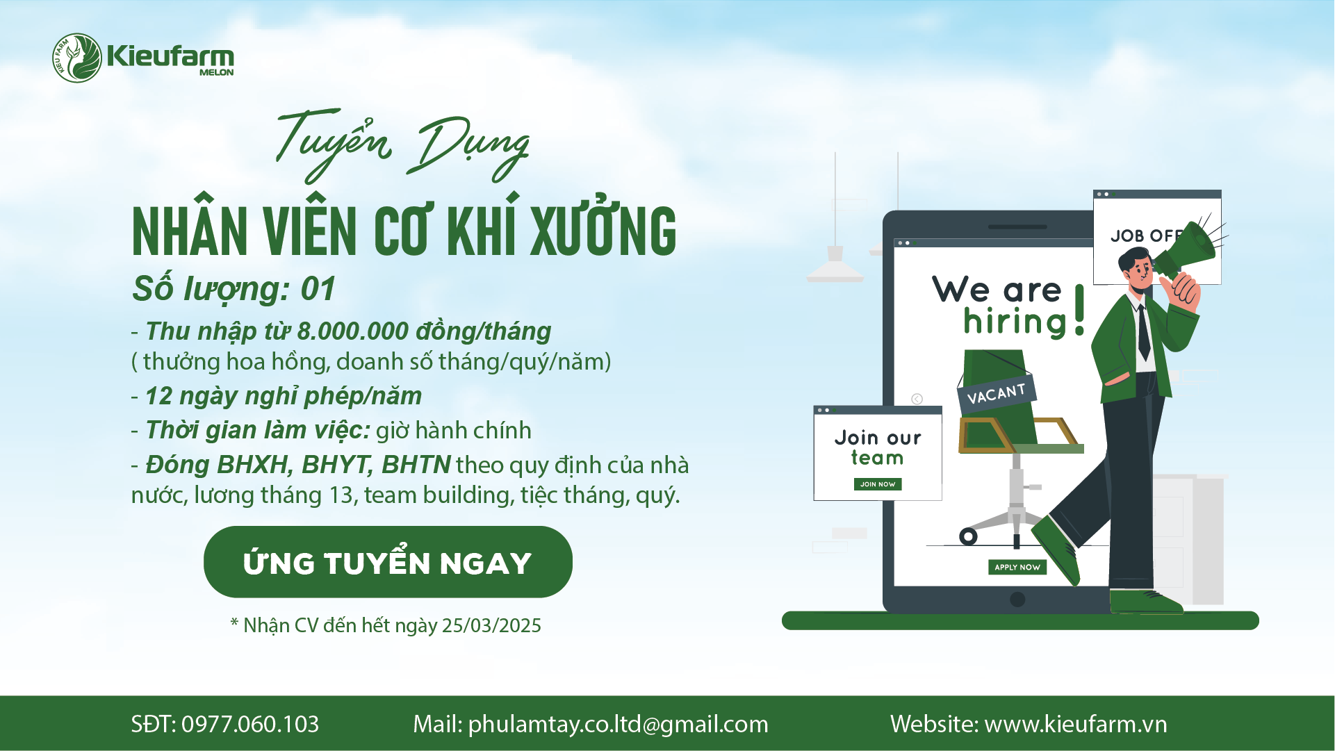 Bạn có kỹ năng về cơ khí và mong muốn làm việc trong một môi trường chuyên nghiệp, năng động? Hãy gia nhập xưởng Phú Lâm Tây – nơi chuyên gia công vật liệu lắp ráp hệ thống nhà màng và thiết bị hỗ trợ trong nông nghiệp công nghệ cao.