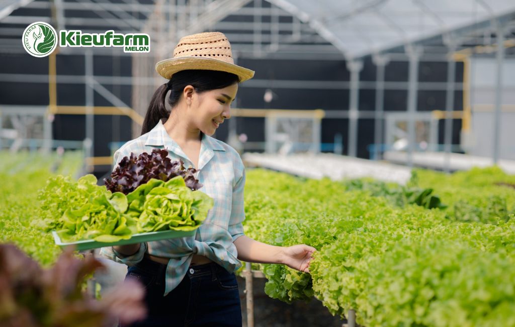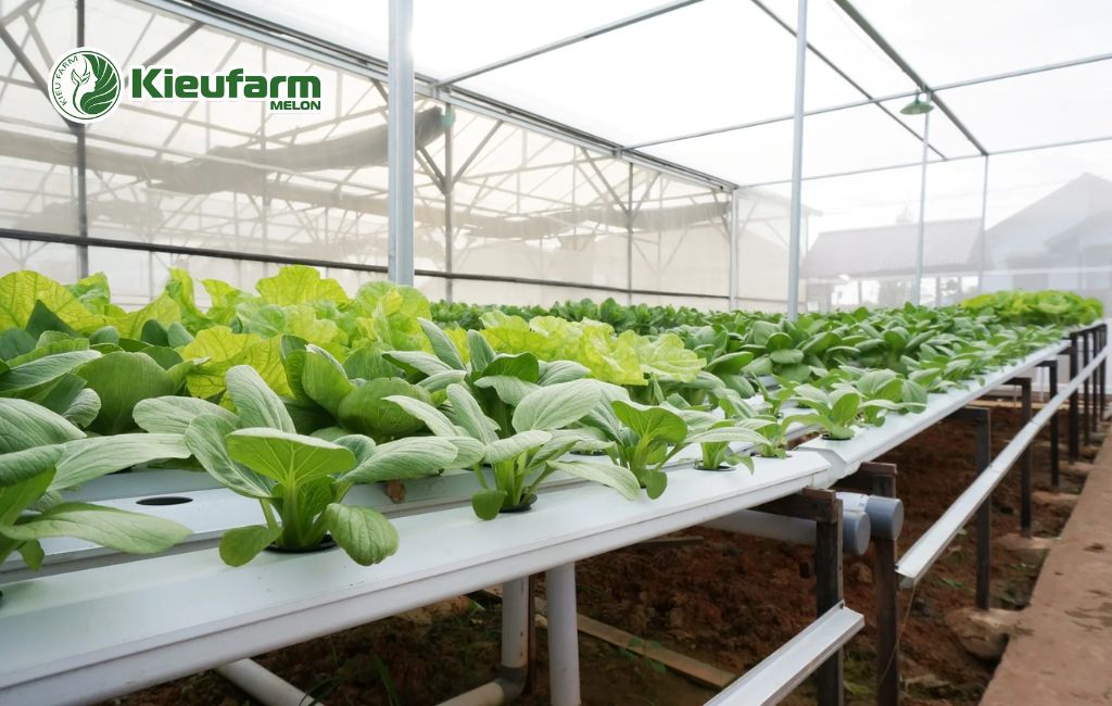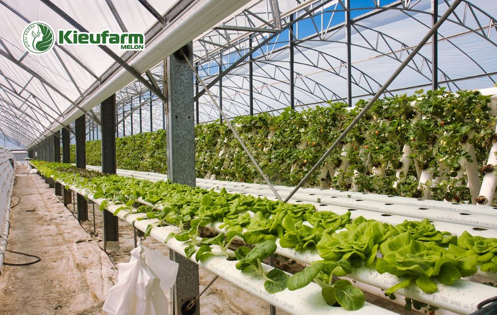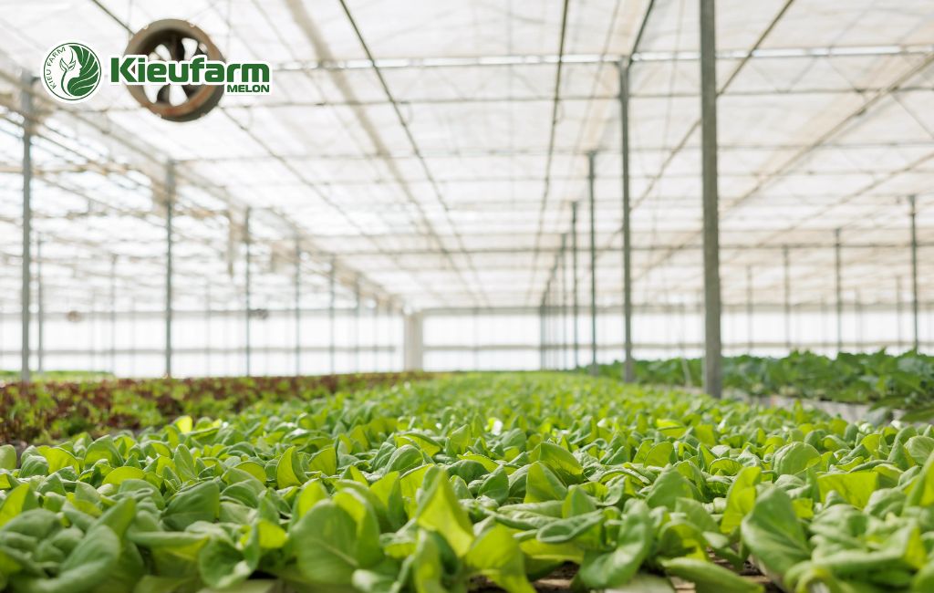 Mỗi loại cây — từ rau ăn lá, rau ăn quả đến hoa và dưa lưới — đều có yêu cầu khác nhau về nhiệt độ, ánh sáng, độ ẩm. Kieufarm áp dụng thiết kế chuyên biệt, đảm bảo:
