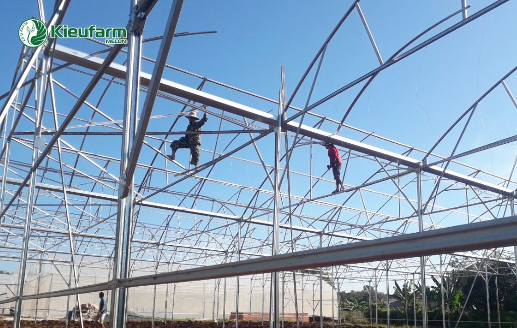 Quy trình thiết kế và thi công nhà màng dưa lưới tại Kieufarm