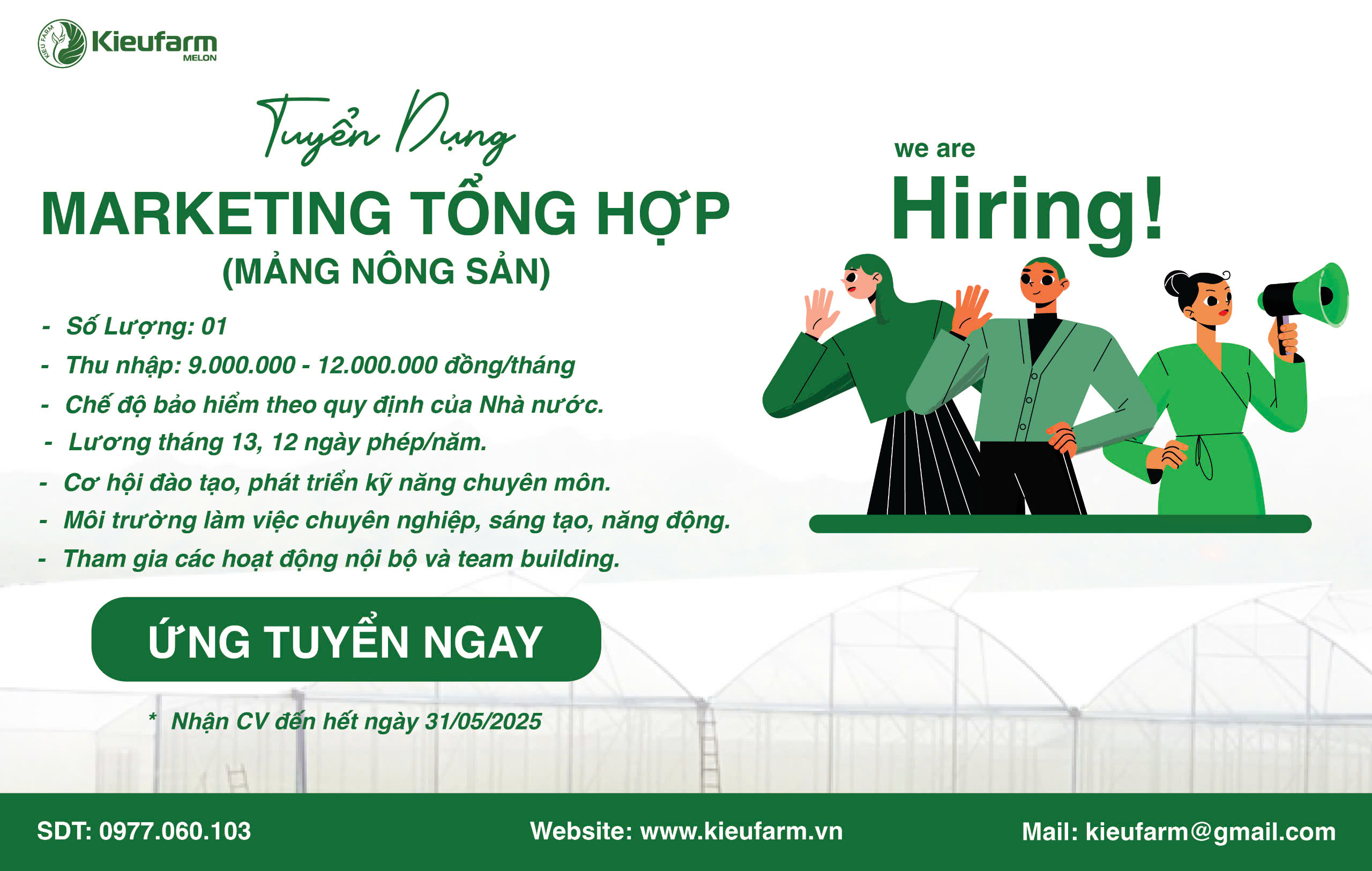 Hãy gia nhập Kieufarm và cùng chúng tôi phát triển bền vững trong ngành nông nghiệp công nghệ cao!