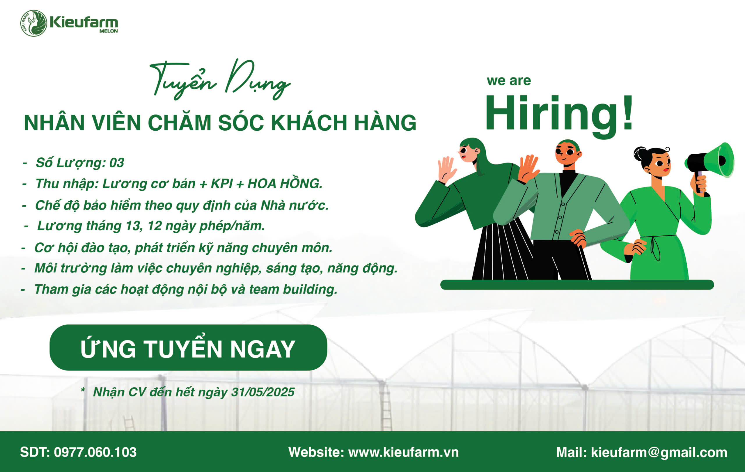 Kieufarm – Nơi bạn được lắng nghe, được phát triển và được ghi nhận. Gia nhập cùng chúng tôi để nâng tầm chất lượng phục vụ khách hàng và góp phần xây dựng nền nông nghiệp bền vững!